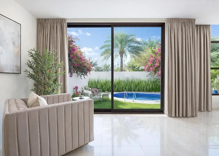 During the stay at the villa, guests can explore popular spots like the flower Dubai Miracle Garden and the 36-hole Emirates Golf Club, which are located about 10 minutes' drive from the property and 6 km away, respectively.
